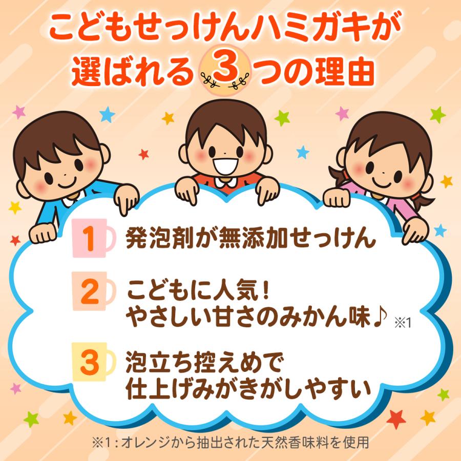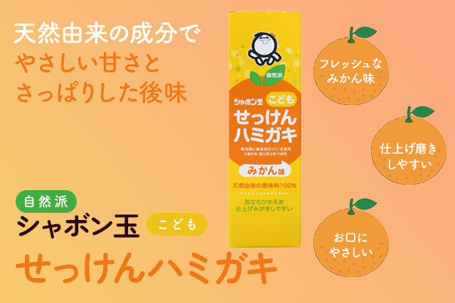 お子さまに人気のみかん味を使用し、フレッシュな味でさっぱりした使い心地です。