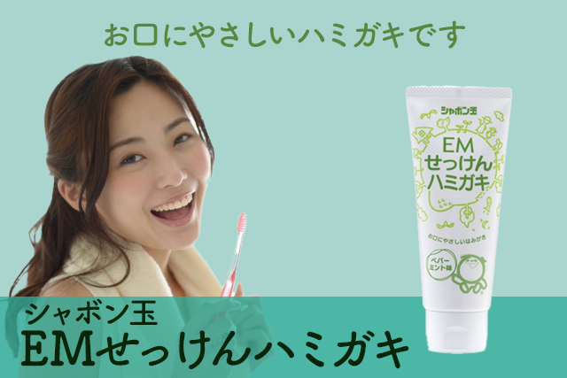 ●”EM"が入っている「せっけんハミガキ」なのでお口に優しい